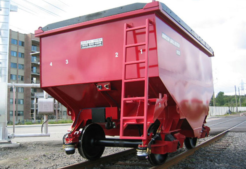 An important design feature of the Hudson Ballaster is the Self Steering Suspension System. Self steer uses the wheel and rail profiles to steer the car on tangent track and through curves. The wheel flanges are not used for steering. This results in reduced wheel wear, less noise from the wheel/rail interaction, and because there is less friction while moving the car, there is a reduction in fuel requirements.